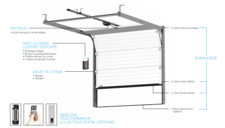 Trouvez chez nous la qualité des portes de garage GYPASS. Porte de garage sectionnelle plafond isolée (motorisée ou non) Porte de garage sectionnelle latérale isolée